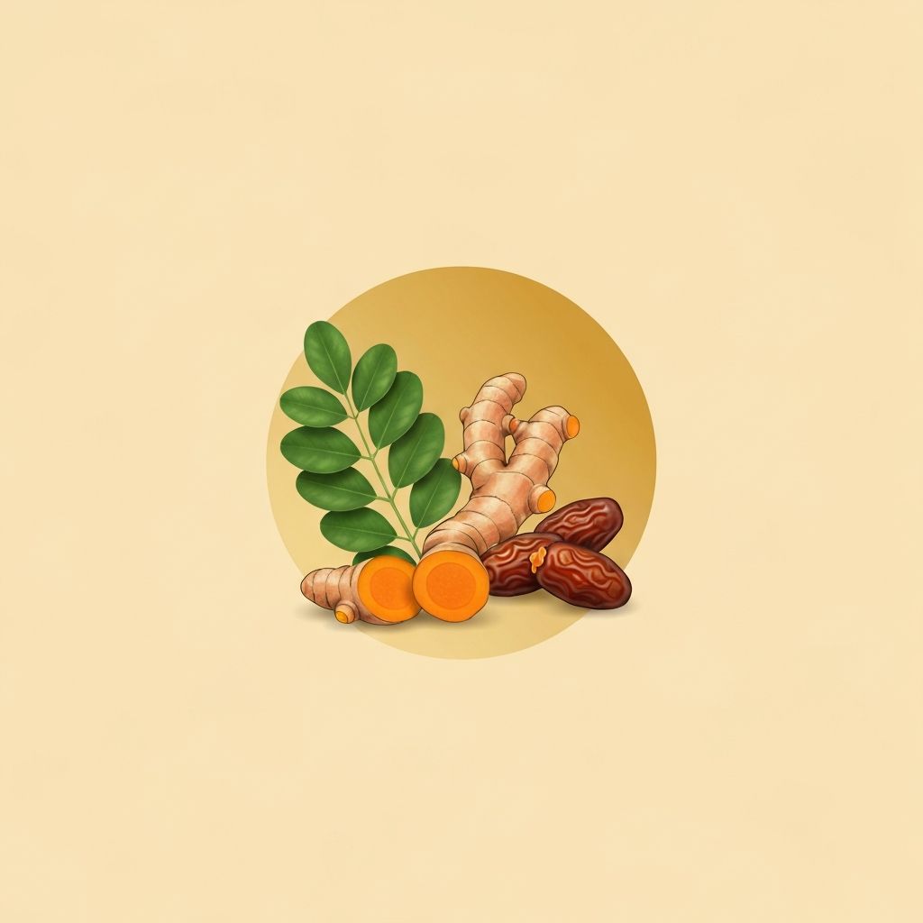 Traditional preparations include: fresh moringa leaves in soups and herbal drinks; turmeric and ginger in curry pastes, rendang, and herbal infusions; dates in nasi kebuli and herbal preparations; black seed in spice blends and traditional wellness infusions; honey as a sweetener in herbal drinks. These represent cultural meal practices developed over generations in Indonesian kitchens.